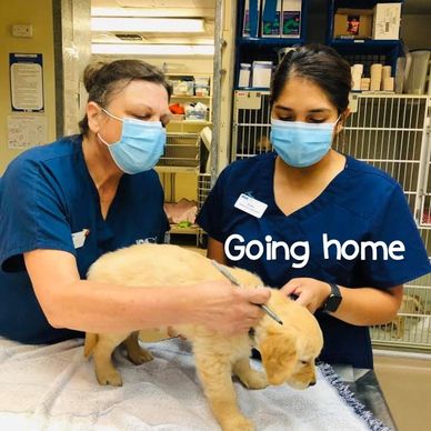 Puppies receive the first set of shots right around 7 weeks' age. After getting a full head-to-tail exam by our veterinarian (also ensuring clear fecal results), puppies are released to their new homes. Puppies are microchipped and are sent home with 1st month's dose of flea/tick and a heart worm Rx prescribed by our veterinarian.
